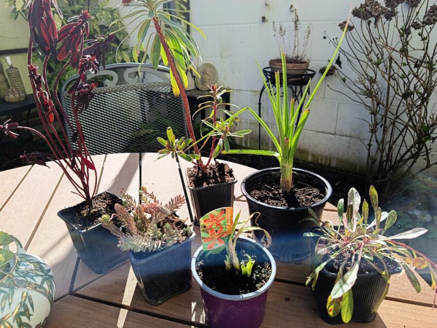 All diese Pflanzen erreichen eine ordentliche Größe – irgendwann. Deshalb sieht es jetzt noch ein wenig dürftig aus. Ich sehe noch viel zu viel nackte Erde. Daher werde ich mir noch andere flach wachsende Pflanzen besorgen, die den Boden bedecken. Sedum und Delosperma fallen mir da spontan ein. Aber auch Einjährige werde ich dazwischen setzen. Niedrige Löwenmäulchen und Kapuzinerkresse in tropisch anmutenden Farben zum Beispiel. Die Samen liegen schon bereit.