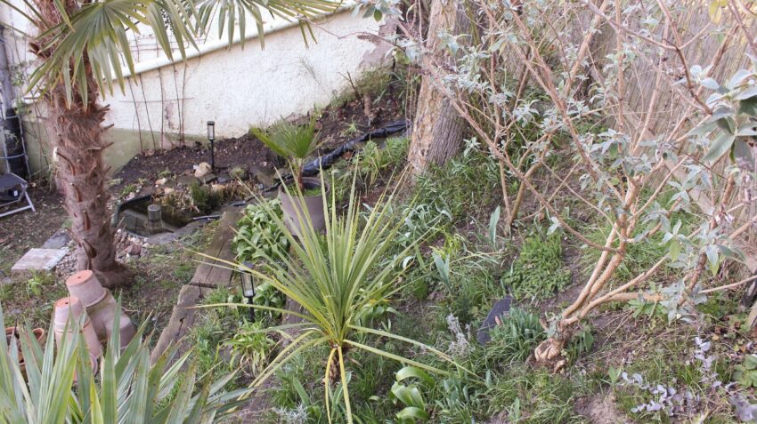 Bevor jetzt Kommentare zu möglichen Baumaßnahmen wie Zäunen, Natursteinmauern uns großen Terrassierungen kommen: Haus und Garten sind gemietet und in einem Mietobjekt kann ich nicht so agieren wie ich es bei Eigentum tun würde. Außerdem überlegt man es sich dreimal, ob man große Summen in fremdes Eigentum, in diesem Fall einer Vermietungsgesellschaft investiert. Ich muss also mit einfachen, nötigenfalls einfach rückbaufähigen, Mitteln etwas für mich passendes gestalten.