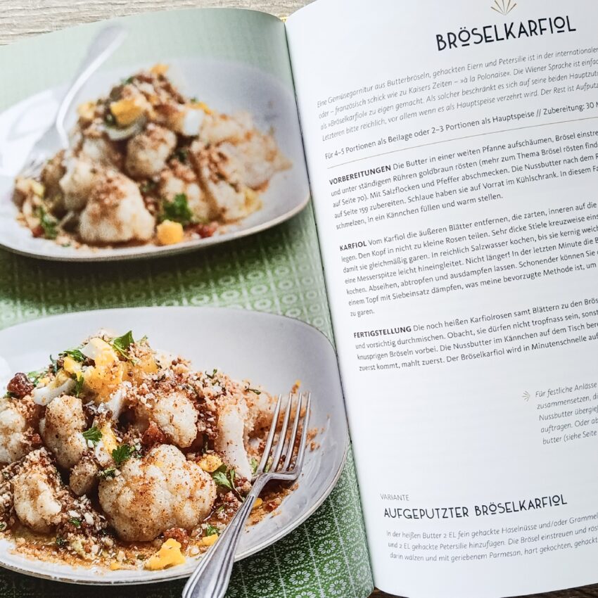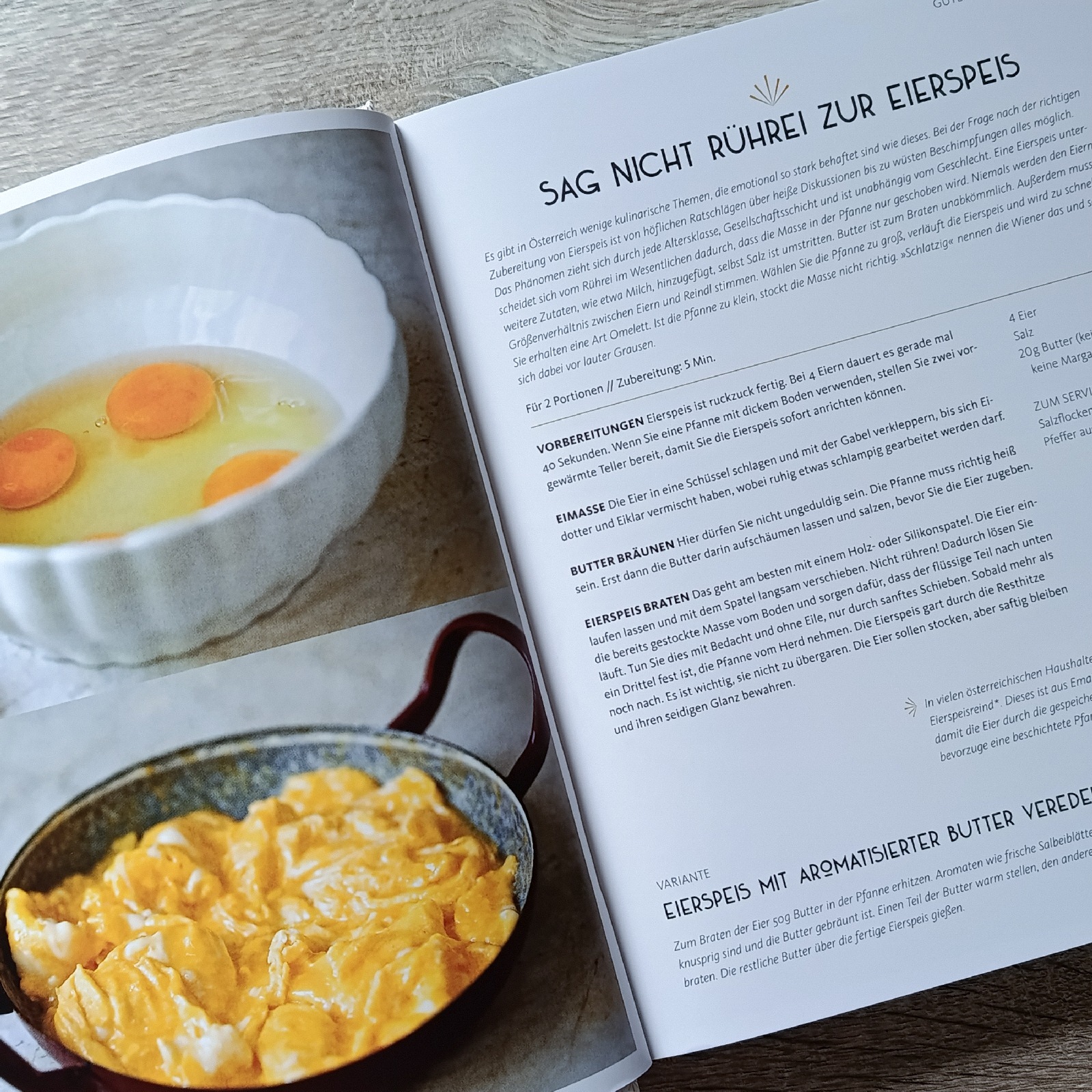 Selbstverständlich findet man in diesem umfangreichen Buch, das gerade im DK-Verlag neu aufgelegt wurde – überarbeitet und modernisiert, alle Wiener Klassiker vom Schnitzel bis zum Apfelstrudel. Aber es gibt auch Gerichte, die allen, die noch nie dort waren, vielleicht nicht ganz so geläufig sind. Herzhaft, cremiger Liptauer ist so ein Gericht, oder die gefüllte Kalbsbrust, Hascheeknödel oder Saibling im Packerl und noch ganz viel mehr.